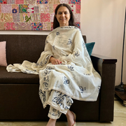 Blue Cotton Block Print Suit & Mulmul Dupatta