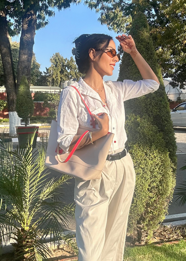 White Cotton Linen Shirt with Colourful Buttons