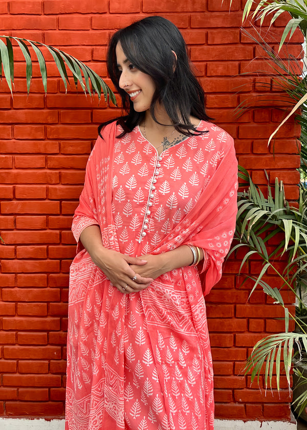 Peach Block Print Suit & Georgette Dupatta