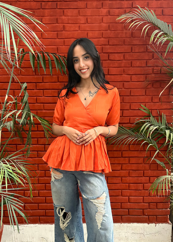 Orange Cotton Satin Wrap Top