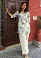 Super chic and summery cream coloured short cotton kurta with an elegant grey botanical print paired with the softest wide-leg white pants for a the perfect summer outfit!